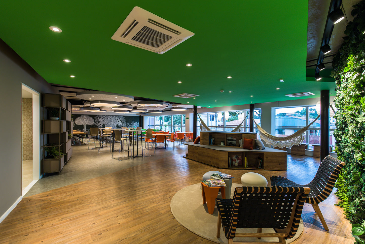 Local pensado para treinamento dos colaboradores, permitindo que possam estudar, almoçar e descansar. Ambiente descontraído e motivador, que incentiva a criatividade dos usuários.